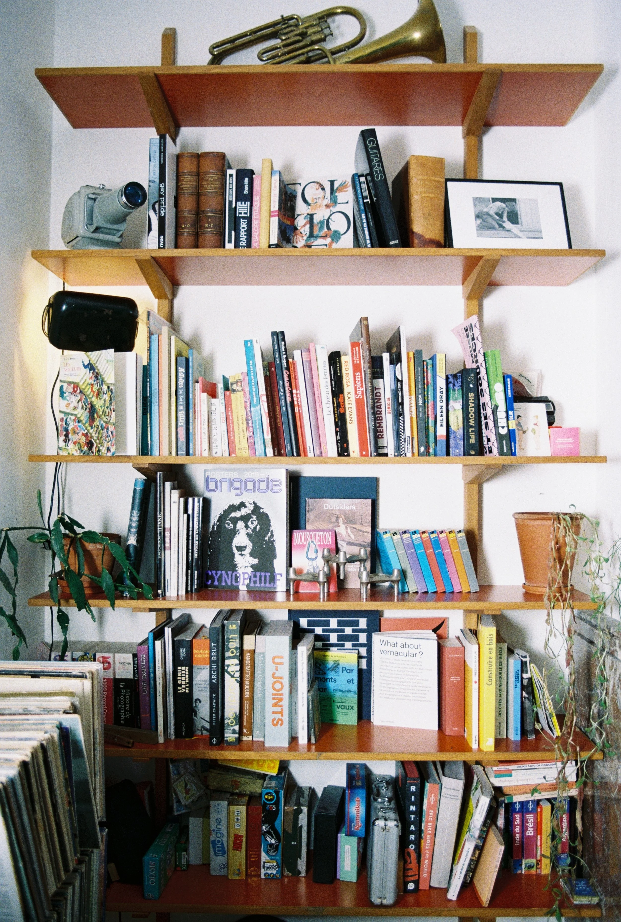 BIBLIOTHEQUE JUBILE / 2019Montants en chêne massif huilés, étagères en multiplex bouleau bakélisé brun avec des alaises en chêne Conception et production : Sarah LEDANT